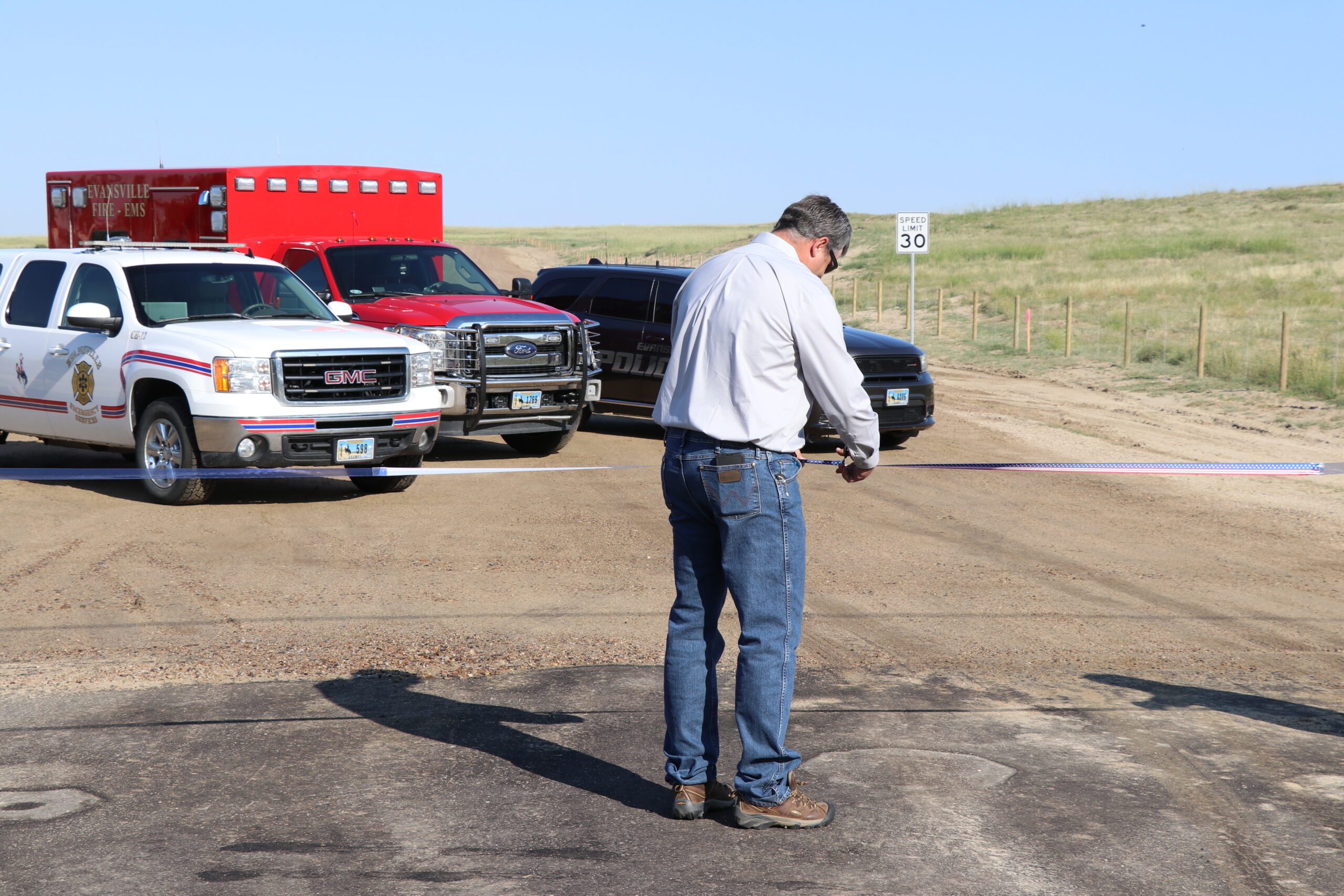 On Tuesday, August 10th a Ribbon Cutting Ceremony was held to celebrate the opening of the Evansville Secondary Access Road. The Ribbon Cutting Ceremony included brief statements about the long and intensive work that went into seeing the project to fruition as well as a ribbon cutting to open the road to the public. As an integral part of the project, WLC’s President, Shane Porter, received the honor from Evansville of cutting the ribbon to open the road.